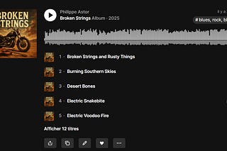 Soundcloud a finalement accepté de distribuer mon album de blues rock électro "Broken Strings", produit à 100 % avec une IA générative, sur les…